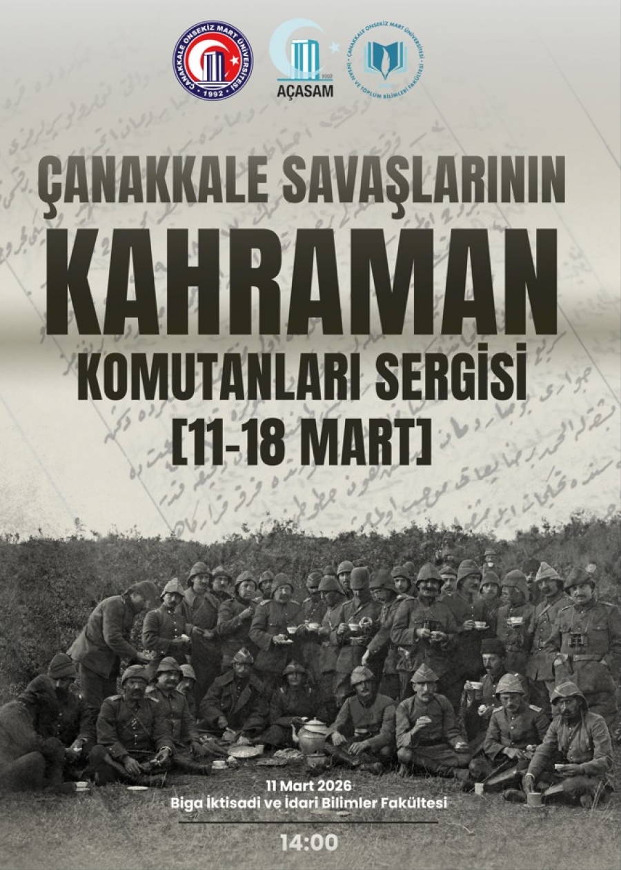 Bölümümüz, Atatürk ve Çanakkale Savaşlarını Araştırma Merkezi ve Atatürk İlkeleri ve İnkılap Tarihi Bölümü ile birlikte 11 Mart 2026 tarihinde, saat 14:00'da, Biga İktisadi İdari Bilimler Fakültesi'nde "Çanakkale Savaşlarının Kahraman Komutanları" adlı sergi düzenleyecektir. Tüm öğrencilerimiz davetlidir.